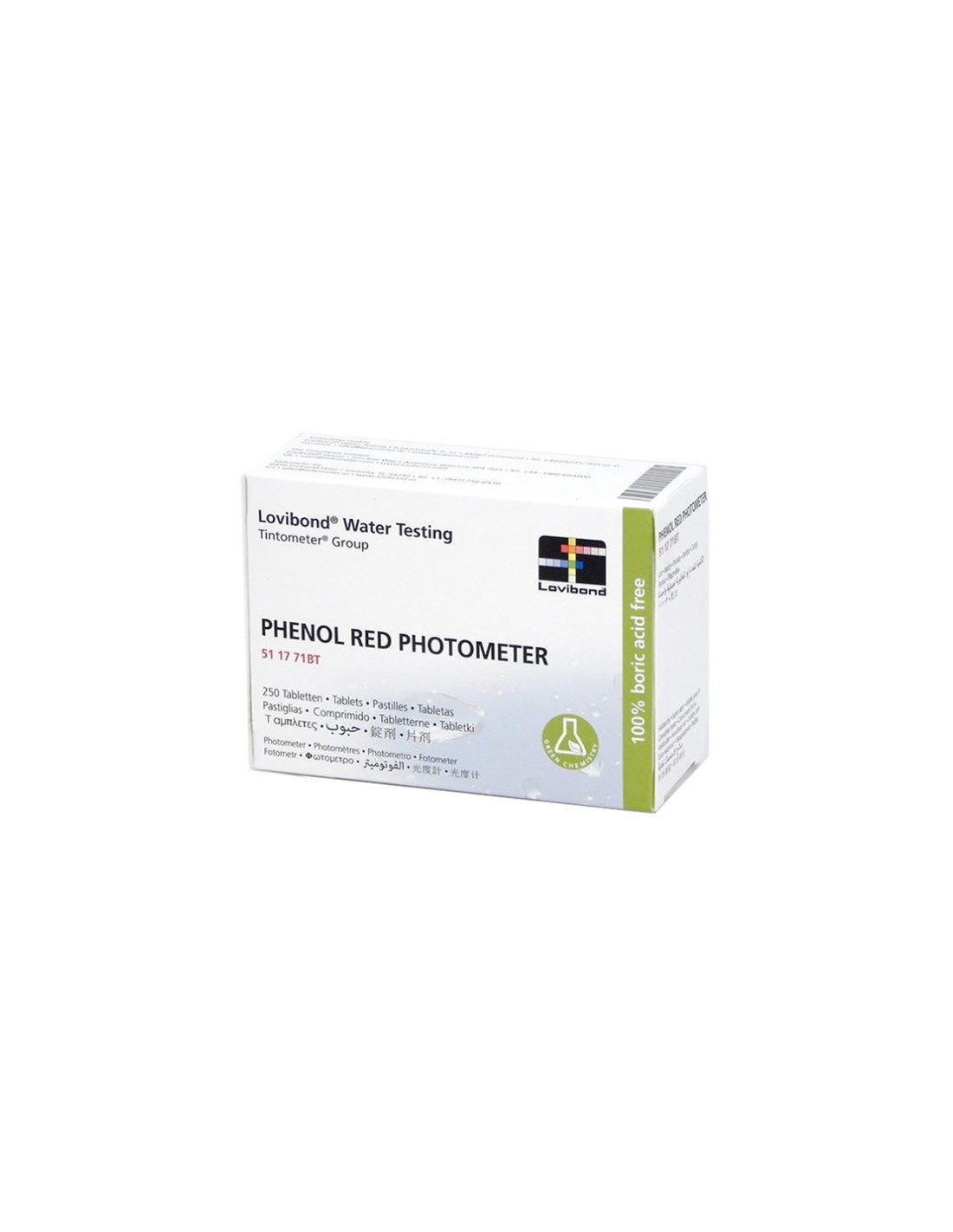 Caja de 250 tabletas reactivas Phenol Red (Photometer) de la marca Lovibond. Recambio original (Ref. 511771BT) para el análisis digital del nivel de pH. Compatible con fotómetros Scuba II, Scuba 3S, Series MD y PM.
