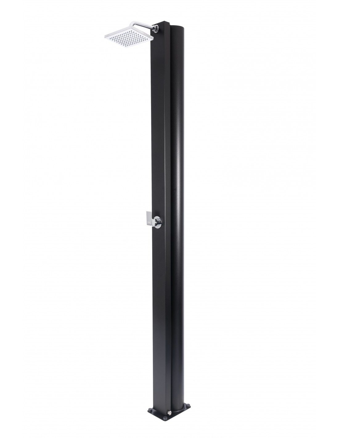 Ducha Solar CRM Watermixer Black Edition. Cuerpo negro texturado con grifería y rociador cromados. Modelo estándar