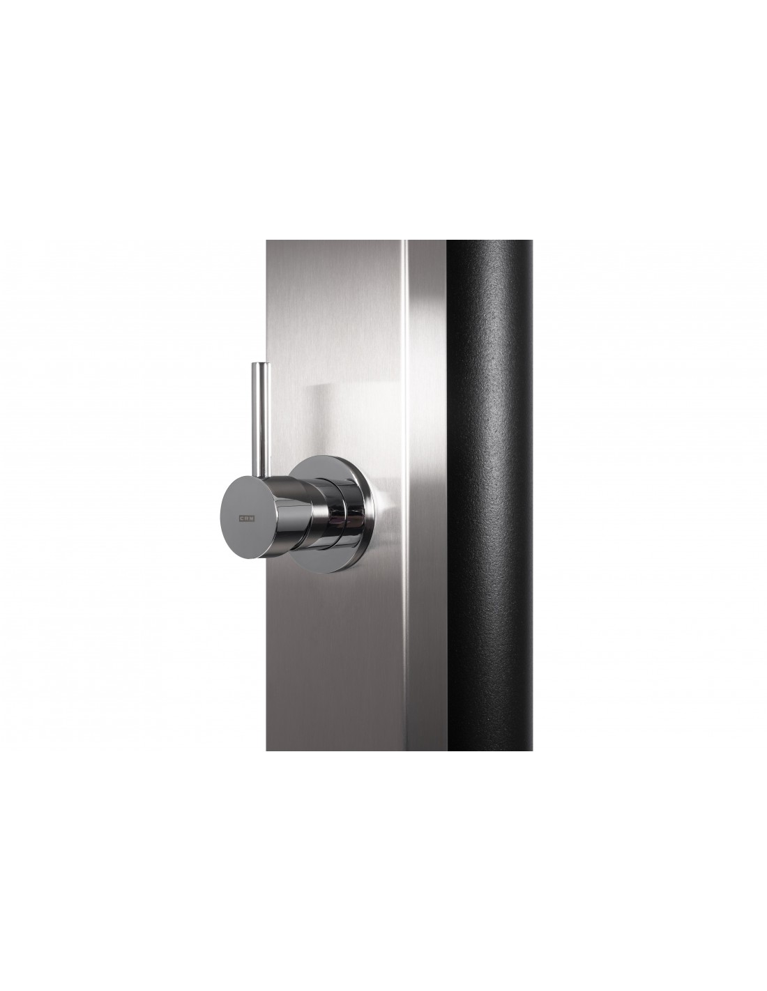 - Control por Monomando: La mayoría de duchas inox clásicas usan pomos antiguos. Este modelo incorpora un moderno monomando de diseño redondo que permite regular el agua con una sola mano y aporta un toque contemporáneo.